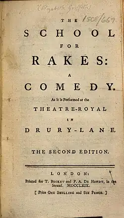 The School for Rakes is a 1769 comedy play by the British writer Elizabeth Griffith.[1] It was inspired by the 1767 French play Eugénie by Pierre Beaumarchais.