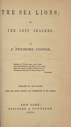 The Sea Lions; Or, The Lost Sealers is an 1849 sea novel by James Fenimore Cooper. The plot revolves around two sealers stranded in the Antarctic ice.[1] The novel was first published in two volumes, by Stringer & Townsend.[2] Critic W.B. Gates described the novel as taking inspiration from Charles Wilkes's Narrative of the United States Exploring Expedition of the Years 1838-1842.[3]