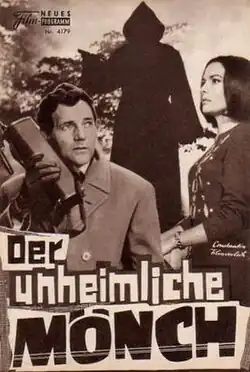 The Sinister Monk (German: Der unheimliche Mönch) is a 1965 West German thriller film directed by Harald Reinl and starring Karin Dor, Harald Leipnitz and Siegfried Lowitz. It is based on the 1927 play The Terror by Edgar Wallace and was part of a very successful series of German films inspired by his works.[1]