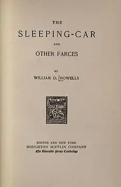 The Sleeping Car is a farce play in three parts by William Dean Howells, first published in the United States in 1883. This play takes place entirely within a 24-hour period on a railway sleeping car, and revolves around a woman's late night confusion regarding the premature appearance of her husband and brother. This work is one of Howells' minor works, but reflects the same tendencies towards literary realism as many of Howells' more famous works, including The Rise of Silas Lapham and A Modern Instance. This play is not well-read amongst modern readers, and is often overlooked in literary discussion due to its relative contemporary obscurity. Currently, this work is not being published by any publishing houses, but is available free through Project Gutenberg[3] or other websites.