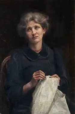 Plying her needle and thread –
