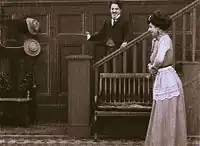 ![]() Chaplin as the "star" boarder and Durfee as his attentive landlady | |