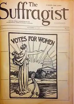 The Suffragist was a weekly newspaper published by the Congressional Union for Woman Suffrage in 1913 to advance the cause of women's suffrage. The publication was first envisioned as a small pamphlet by the Congressional Union (CU), a new affiliate of the National American Woman Suffrage Association (NAWSA), which in 1917 became the NWP. It evolved into an eight-page weekly tabloid newspaper when the first issue appeared on 15 November 1913.[1]