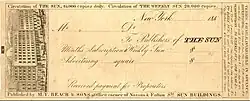 Subscription slip, the New York Sun, ca. 1845, featuring their offices on the left
