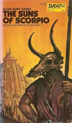The Suns of Scorpio is a science fiction novel written by Kenneth Bulmer under the pseudonym of Alan Burt Akers. It is the second volume in his extensive Dray Prescot series of sword and planet novels, set on the fictional world of Kregen, a planet of the Antares star system in the constellation of Scorpio. It was first published by DAW Books in 1973.