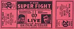 The Super Fight was a fictional boxing match between Rocky Marciano and Muhammad Ali shot in 1969 and released in 1970. At the time, Ali and Marciano were the only undefeated heavyweight champions in history and fans often debated who would win had they met in their primes. Ali and Marciano were filmed sparring for 75 one-minute rounds producing several possible scenarios for a genuine fight, with the result claimed to have been determined using probability formulas entered into a computer.