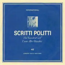 "The 'Sweetest Girl'" is a song written by the Welsh singer Green Gartside. It was originally performed by Gartside's band Scritti Politti, and released in October 1981 as a single. The single peaked at No. 64 in the UK singles chart.[4] The keyboards were played by Robert Wyatt.[5]