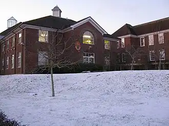 The school is named after Thomas Hardye of Melcombe Regis and later Frampton. Hardye was a property owner who endowed the Dorchester "free" school in 1579, ten years after its completion by the town. It is unknown how old the original school was, given that the 1569 building was constructed to replace an older, damaged school building.[2] Hardye was an ancestor of novelist Thomas Hardy and Vice-Admiral Sir Thomas Hardy[3] His monument is on the south wall of St. Peter's Church. The Tudor grammar school offered free education to boys of the town and neighbourhood. The building was destroyed in a 1613 fire,[2] but was rebuilt in a few years and later flourished under the Puritan regime of Revd. John White. An oak screen was installed into the reconstructed school, alleged to have been salvaged from a Spanish Galleon. The oak screen was later moved between buildings and structures and remained part of the school until 2021.[4] It survived the doldrums of the 18th century, though at times having very few scholars, and struggled through the first half of the 19th century. The Charity Commission eventually closed it whilst it was rebuilt, reopening in 1883.[3] It was known as Dorchester Grammar School until approximately 1952, when the name Hardye's School was adopted as a reminder of the 16th century founder and links to the Hardye family.