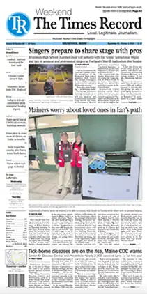 The Times Record (also known as the Bath-Brunswick Times Record)[2] is an independently-owned weekly newspaper published on Fridays that covers the Midcoast region of Maine. Operating out of Brunswick, it was founded in 1967 as a result of a merger between two historic newspapers, the Brunswick Record and the Bath Daily Times. It is owned by the Maine Trust for Local News.