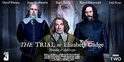"The Trial of Elizabeth Gadge" is the third episode of the second series of the British dark comedy anthology television programme Inside No. 9. It was written by Reece Shearsmith and Steve Pemberton, and directed by Dan Zeff. It first aired on 9 April 2015 on BBC Two. The story follows a 17th-century witch trial. Elizabeth Gadge, played by Ruth Sheen, stands accused of witchcraft by inhabitants of the village of Little Happens, including characters played by Sinead Matthews, Jim Howick, Paul Kaye and Trevor Cooper. The magistrate Sir Andrew Pike, played by David Warner, has summoned the famed witch-finders Mr Warren and Mr Clarke, played by Shearsmith and Pemberton, to try Elizabeth, but is more concerned with bringing visitors to the village than finding the truth.