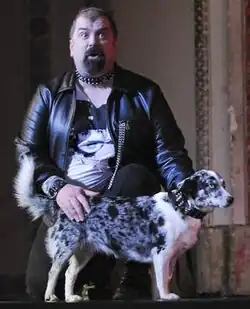 Tim Mace as Launce and Abbie as Crab from a 2009 modern dress performance at the Capitol Center Theater