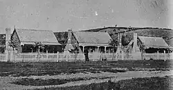 In the mid-1870s the loans were also used to build 4-roomed cottages, to encourage immigrants to move to areas needing labour.[27] They were built of timber and corrugated iron, so as to be portable.[28] There was criticism that the cottages were a waste of money,[29] remained empty,[30] were occupied by people unsuited to the work available,[31] or were in the wrong places.[32] Some of the cottages have survived, as they were built of kauri and used brass screws. The uninhabited cottages were put to other uses, such as a church,[33] or council chambers.[34]