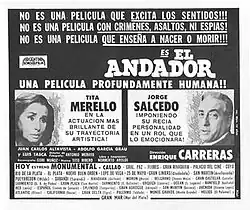 The Walker (Spanish: El Andador) is a 1967 Argentine comedy drama film directed by Enrique Carreras and written by Norberto Aroldi. The play itself was written by Norberto Aroldi.