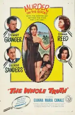 The Whole Truth is a 1958 British-American thriller film directed by John Guillermin and starring Stewart Granger, George Sanders, Donna Reed, Gianna Maria Canale and Peter Dyneley.[2] It was written by Jonathan Latimer based on the 1955 play of the same title by Philip Mackie.