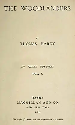 The Woodlanders is a novel by Thomas Hardy serialised from 15 May 1886 to 9 April 1887 in Macmillan's Magazine[1] and published in three volumes in 1887.[2] It is one of his series of Wessex novels.