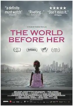 The World Before Her is a 2012 Canadian documentary film written and directed by Nisha Pahuja and produced by Toronto's Emmy Award winning Storyline Entertainment. The film explores the complex and conflicting environment for young girls in India by profiling two young women participating in two very different types of training campRuhi Singh, who aspires to become Miss India, and Prachi Trivedi, a Hindu nationalist with the Durga Vahini.[1]