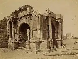 Theveste was raided by the Vandals, but it was rebuilt and made part of Byzantine North Africa at the beginning of the reign of Justinian I by the patricius Solomon. He erected a tomb there, which still exists. The city was nearly destroyed by Umayyad Caliphate forces, but a small village (probably initially populated by a few surviving Christian Berbers) remained for centuries.[7]