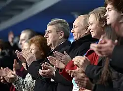 There was wide speculation that Vladimir Putin's support was a key factor in Thomas Bach's election as IOC president in September 2013.[36] It was reported that Putin had congratulated Bach by phone only a few minutes after his election.[37]