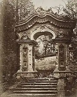 One of Child's most significant contributions to both 19th-century photography and the study of Chinese architecture and history are his photographs of Yuanmingyuan – known in English as the Old Summer Palace – one of the most potent symbols of China's past.[12] Child's images are among the earliest and most important photographic evidence of particular features at the significant historical site.[13] Child's photograph of the Prince's Porch is of particular importance. It is the only known photographic record of this architectural masterpiece.[13] Additional sites that Child photographed such as the Xiyang Lou and the Fountain Gate would be further destroyed in the Boxer War and subsequent conflicts.[14]