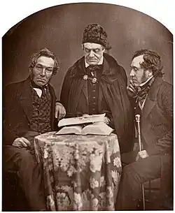 Dodd (centre) with William Clements (left) and Joseph Mayer sometime before 1850