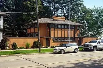 The Thomas P. Hardy House is a Frank Lloyd Wright-designed Prairie School home in Racine, Wisconsin, United States, that was built in 1905.[2] The street-facing side of the house is mostly stucco, giving the residents privacy from the nearby sidewalk and street, but the expansive windows on the other side open up to Lake Michigan.[3]