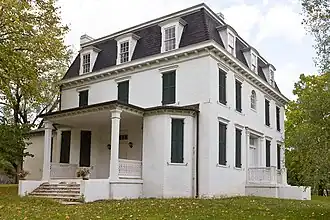 Thomas R. Carskadon House also known as the Carskadon Mansion and "Radical Hill," is a historic home located on Radical Hill overlooking Mineral Street (US 220), in Keyser, Mineral County, West Virginia. It is the former residence of Thomas R. Carskadon, an influential Mineral County farmer and political leader. It was built about 1886, and has two sections: a 2+12-story rectangular, brick main block and a two-story rear ell. It features a hip-on-mansard roof and two one-story, brick polygonal bays. It combines features of the Italianate and French Second Empire styles. Also on the property are the ruins of a brick dairy, the cement foundations of a silo, and the stone foundations of another outbuilding.[2]