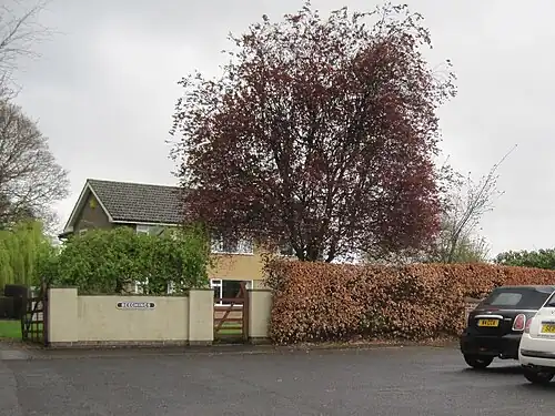 When opened, the station had only one platform with a brick station building of a typical North Eastern Railway design, similar to the one in Garforth, and a long siding opposite to the platform, but no passing loop. On the down side there was a goods yard, consisting of a loop and three sidings, two of them serving a cattle dock, the third (also equipped with a loop) serving coal drops. A signal box controlled movements in the station and the goods yard. When the line from Cross Gates was doubled in 1901, a second platform with a timber waiting room was built, and the platforms were connected by a metal foot bridge at their southern ends. Until closure, the station remained oil-lit and kept its pre-nationalisation signage. Due to high operating costs compared to low patronage, the line and its stations were earmarked for closure on 23 October 1963 and closed to all traffic on 6 January 1964. The tracks were lifted in 1966. The station area and the goods yard were cleared in the 1970s for new housing, and only the platform edges remain in one of the gardens. The station master's house still stands in the vicinity of the former station.[2]