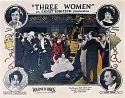 Three Women, also known as Die Frau, die Freundin und die Dirne, is a 1924 German-American silent drama film starring May McAvoy, Pauline Frederick, and Marie Prevost, directed by Ernst Lubitsch, and based on the novel Lillis Ehe by Yolande Maree (Iolanthe Mares).