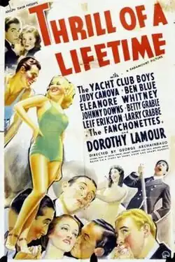 Thrill of a Lifetime is a 1937 American comedy film directed by George Archainbaud produced by Fanchon, and written by Seena Owen, Grant Garett and Paul Gerard Smith. The film stars James V. Kern, Charles Adler, George Kelly, Billy Mann—at the time a musical-comedy act called the Yacht Club Boys—along with Judy Canova, Ben Blue and Eleanore Whitney.