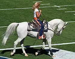 - ^ a b c Staff (January 22, 2014). "Meet Thunder, the Denver Broncos' Mascot at the National Western Stock Show (story and video)". Horse Channel. Retrieved January 26, 2014.