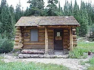 The Thunder Lake Patrol Cabin is a small structure in Rocky Mountain National Park, Colorado. Built in 1930, the 12-foot (3.7 m) by 16-foot (4.9 m) cabin may have been built as a simple shelter, but has more recently been used on an occasional basis as a backcountry patrol cabin in the Wild Basin area. The one story one-room log cabin is not used in the winter, but does have a stove with a stone fireplace. The main cabin is gable-roofed, with a small shed-roofed porch, and is a good example of the National Park Service rustic style. The logs are saddle-notched, projecting an increasing distance at their ends from top to bottom.[2]