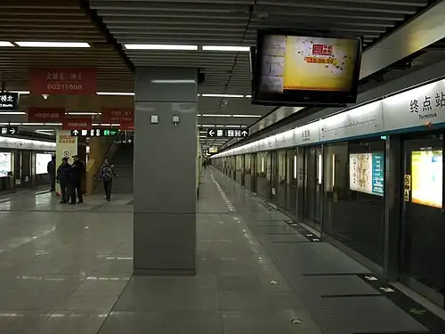 Tiangong Yuan station[1] (simplified Chinese: 天宫院站; traditional Chinese: 天宮院站; pinyin: Tiāngōng Yuàn Zhàn) is a station on and the southern terminus of the Daxing line (through operation to Line 4) of the Beijing Subway.[3] The station is located at the intersection of Xinyuan Street and Simiao Road.[2]