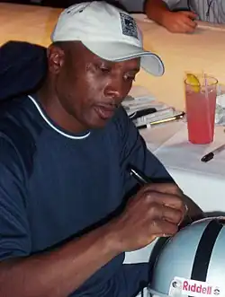 Timothy Donell Brown (born July 22, 1966) is an American former professional football player who was a wide receiver in the National Football League (NFL). He played college football for the Notre Dame Fighting Irish, where he won the Heisman Trophy, becoming the first wide receiver to do so. He spent sixteen years with the Los Angeles / Oakland Raiders, during which he established himself as one of the NFL's greatest wide receivers of all time.[1][2][3] Brown has also played for the Tampa Bay Buccaneers. In 2015, he was inducted into the Pro Football Hall of Fame.