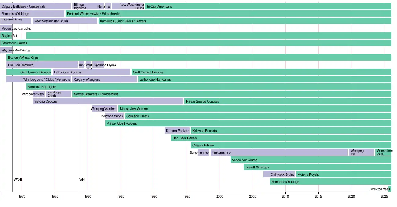 2025: The Penticton Vees of the BCHL are granted expansion status for the WHL, maintaining the Vees moniker. In addition, the league announced that it was seeking ownership for a new franchise in Chilliwack.[45]