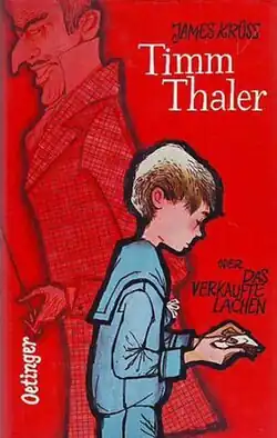 Timm Thaler oder Das verkaufte Lachen (roughly translated as Timm Thaler, or the Traded Laughter and best known as simply Timm Thaler) is a 1962 children's novel by German author James Krüss. Regarded by the Oxford Encyclopedia of Children's Literature as Krüss' best known children's book, Timm Thaler tells the story of a boy who trades his enchanting laughter to a wealthy mysterious Mephistopheles-like Baron in exchange for the ability to win any bet he makes. Regretting the exchange, he undertakes a four-year journey to win his laughter back. In 1979, Krüss wrote a sequel novel, Timm Thalers Puppen oder Die verkaufte Menschenliebe (roughly translated as Timm Thaler's Puppets, or the Traded Love for Mankind).[1]