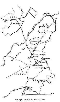 Tissa Wewa is a reservoir in Tissamaharama, thought to have been constructed in the 3rd century BC, either by Mahanaga of Ruhuna or his successor Yatala Tissa of Ruhuna, in order to irrigate paddy lands and supply water to the flourishing city of Tissamaharama.