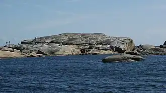 The landscape of the island is hilly. The highest point on the island is the 78-metre (256 ft) tall hill Herkelås. The bedrock forming the island consists of syenite, and the depressions on the island are covered by sand and clay. The shoreline can be rocky, but there are some beaches as well which draw significant numbers of summer tourists.[1]
