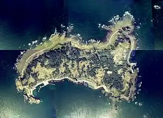 Tobishima (飛島), is an inhabited island located in the Sea of Japan, administered as part of Sakata, Yamagata Prefecture, Japan. The island, 2.75 km² in area, had 158 inhabitants as of 2020. The island has no airport, and access is normally by ferry to the city of Sakata on the mainland. The islanders are dependent mainly on commercial fishing and seasonal tourism.