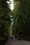 Nikkō National Park is famous for its UNESCO World Heritage Site which was registered as the 10th World Heritage Site in 1999. This encompasses Rinnō-ji, Nikkō Tōshō-gū, Mount Nantai, and Futarasan Shrine. The Kegon Falls, also in Nikkō, is popular with tourists. To travel between the city and the falls, automobiles and buses take the Irohazaka, a road with dozens of switchbacks. In addition, 400-year-old Japanese Cedars (about 13,000 in total) line the famous Cedar Avenue of Nikkō for roughly 35 km, making it the longest tree-lined avenue in the world.[11]