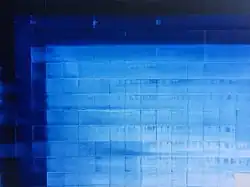 Williamson's paintings are structured color compositions, effected by the abstract expressionism, and an enhancement of the Color field painting. While the color field painting is marked by large-scale, homogeneously filled fields, Williamson interprets this style in a new manner: His works are mostly composed of multilayered color grids which differentiate themselves symmetrically of each other or go over into each other.[4] He does this by using a variety in thickness of paint as well as a series of lines and grids which create a framework to control the chaos and emotion of the painted color-fields, creating an ethereal and multi-layered surface. The borders which are typical for the color field painting become blurred; to its place steps the impression of the complete works which connects the structure of the underground with the play of the colors.