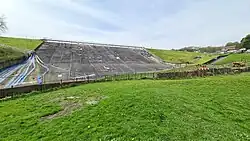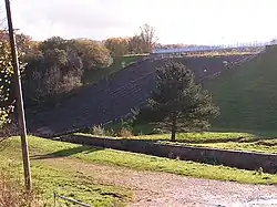 Consultant engineer Nicholas Brown's report of 1836 had specified a puddle trench varying from 12 feet at the brook end to 6 feet in width,[9] but investigations in the late 20th century led to doubt as to whether it was constructed as laid out on original drawings or with more porous core material. The peak of the dam wall is supported either side by embankments with a slope of 1:2.[2] Underneath the dam, the geology includes glacial sands and gravel, glacial till overlying mudstones, sandstones, shales and coal measures.[10]