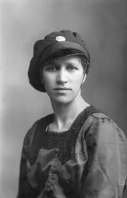 Toini Mäkelä was born to a peasant's family in Keuruu. Her father later worked as a railroad man in Savonlinna where Mäkelä attended an elementary school for two years. At the age of 19, Mäkelä moved to Vyborg, working as a maid, kitchen helper and waitress. After the outbreak of the Finnish Civil War in January 1918, Mäkelä joined the Red Guards. She became a leader of the female company fighting in the Battle of Antrea and the Battle of Valkjärvi. Following the Red defeat in the Battle of Vyborg, Mäkelä fled to the Soviet Russia.[1]