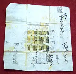 Regarding copper coins, the Kan'ei Tsūhō coin (Kyūjitai: 寛永通寶 ; Shinjitai: 寛永通宝) came to replace the Chinese coins that had been in circulation in Japan, as well as those that were minted privately, and became the legal tender.[8] This put an end to more than four centuries during which Chinese copper coins, obtained through trade or Wakō piracy, had been the main currency of Japan.[8]
