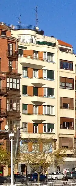 After working as an architect Bilbao designed Altos Hornos de Vizcaya in 1929.[2] Like other architects of his generation he was influenced from German expressionism and the architectural approach led by Erich Mendelsohn.[3] Bilbao was involved in politics becoming a cofounder of the Basque Nationalist Action party in 1930 and the president of the Bilbao Municipal Housing Board in 1931.[1] He was also councillor and deputy mayor of the Bilbao City Council during the Second Republic.[1] In the period 1937–1938 he was minister of justice.[1]