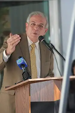 • His daughter, Raquel Regalado, is an attorney and was an elected Miami-Dade County Public School Board member for six years representing District 6 and ran for Mayor of Miami-Dade County in 2016. She became a candidate after taking on the proposed Courthouse tax, and took the incumbent Mayor, Carlos A. Giménez, to an unexpected run off.[20] She eventually lost to Giménez, a Republican who supported Hillary Clinton.[21] She later ran for Florida's 27th congressional district, after the incumbent, Ileana Ros-Lehtinen, said she would not be running for re-election.[22] However, she dropped out in November 2017. She currently represents the District 7 seat of the Miami-Dade County Commission.[23]