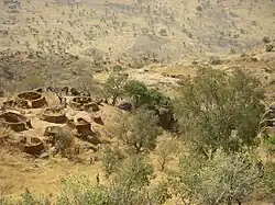 An abandoned village in the Nuba Mountains from the previous civil war. Villagers moved up in the mountains to avoid the militias.