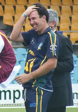 Cooper was selected to play for the Australian Institute of Sports in an Emerging Players Tournament over the 2009 winter, batting at number 3 and holding the team together with little support on multiple occasions.[15][16] In the 2009–10 season Cooper's one-day form improved with three fifties for South Australia in the 2009–10 Ford Ranger One Day Cup season, including a brutal score of 78 runs from just 45 balls with three sixes and eight fours in a seven-wicket win over Tasmania.[17][18][19] His breakout performance came near the end of the season when he played a tour match for the Prime Minister's XI against the West Indies cricket team. After Chris Gayle had blasted 146 runs for the Windies, Cooper outdid him with 160 not out from 120 balls, hitting six sixes and 14 fours.[20]