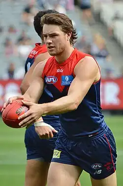 Thomas Frank Sparrow[1] (born 31 May 2000) is a professional Australian rules footballer playing for the Melbourne Football Club in the Australian Football League (AFL). Growing up in the Adelaide Hills, Sparrow began his footballing career at Bridgewater Football Club. He was drafted by Melbourne with their first selection and twenty-seventh overall in the 2018 national draft He made his debut in the twenty-six point loss to Port Adelaide at the Melbourne Cricket Ground in the opening round of the 2019 season as a late inclusion replacing injured teammate Jordan Lewis.[2] On 17 March 2022 Sparrow signed a two-year contract extension with Melbourne.[3]