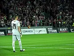 Zatoka Braniewo was his first youth team; he was admitted to MSP Szamotuły football academy in 2007, where he worked with goalkeeping coach Andrzej Dawidziuk, who he credits with being an early inspiration.[3][4] He played for Sparta Szamotuły during the 2009–10 season; on 28 October 2009, he played 90 minutes for Poland's U17 team against Bulgaria.[3] He briefly played for Górnik Konin in the fall of 2010.[3][5] His debut came on 1 October 2011; Jaga defeated Zagłębie Lubin.[6] He was relegated back to the Młoda Ekstraklasa team after Grzegorz Sandomierski returned from playing abroad.[6][3] In 2011, he was flown to England to train with Liverpool goalkeepers for eight days.[5]