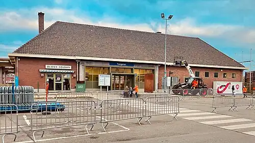 Tongeren railway station (Dutch: Station Tongeren; French: Gare de Tongres)[a] is a railway station in Tongeren, Limburg, Belgium. The station is on the Hasselt-Liège railway and marks the beginning of the Tongeren-Aachen railway through Visé to Germany. The station was also the final stop of the now demolished Drieslinter-Tongeren railway. The train services are operated by the National Railway Company of Belgium (NMBS/SNCB).[1]